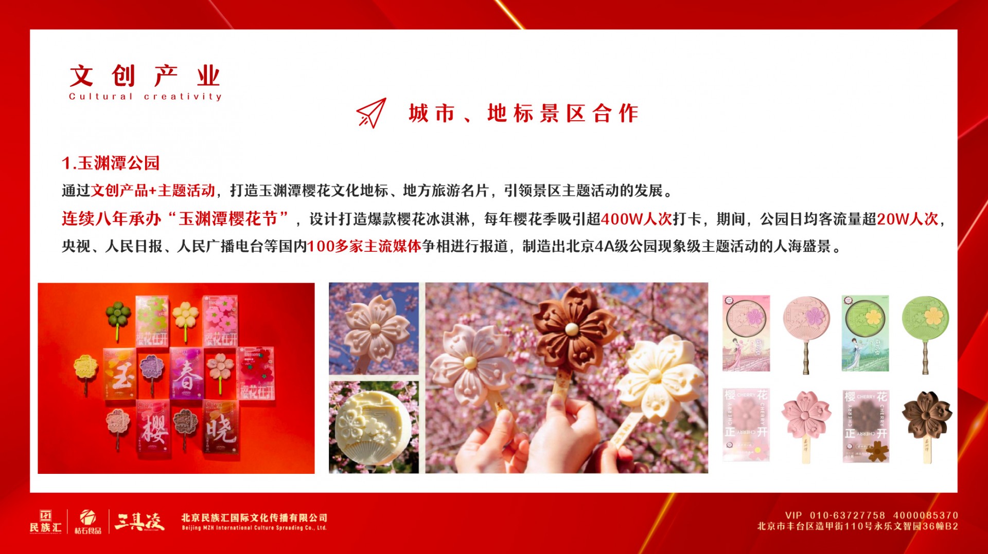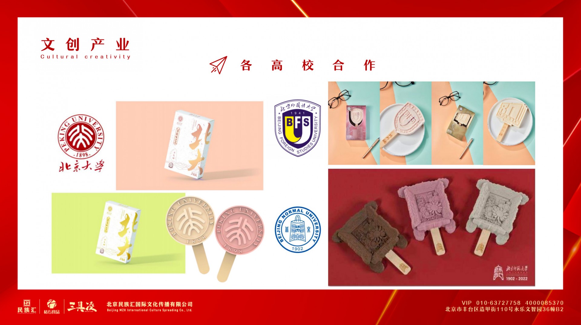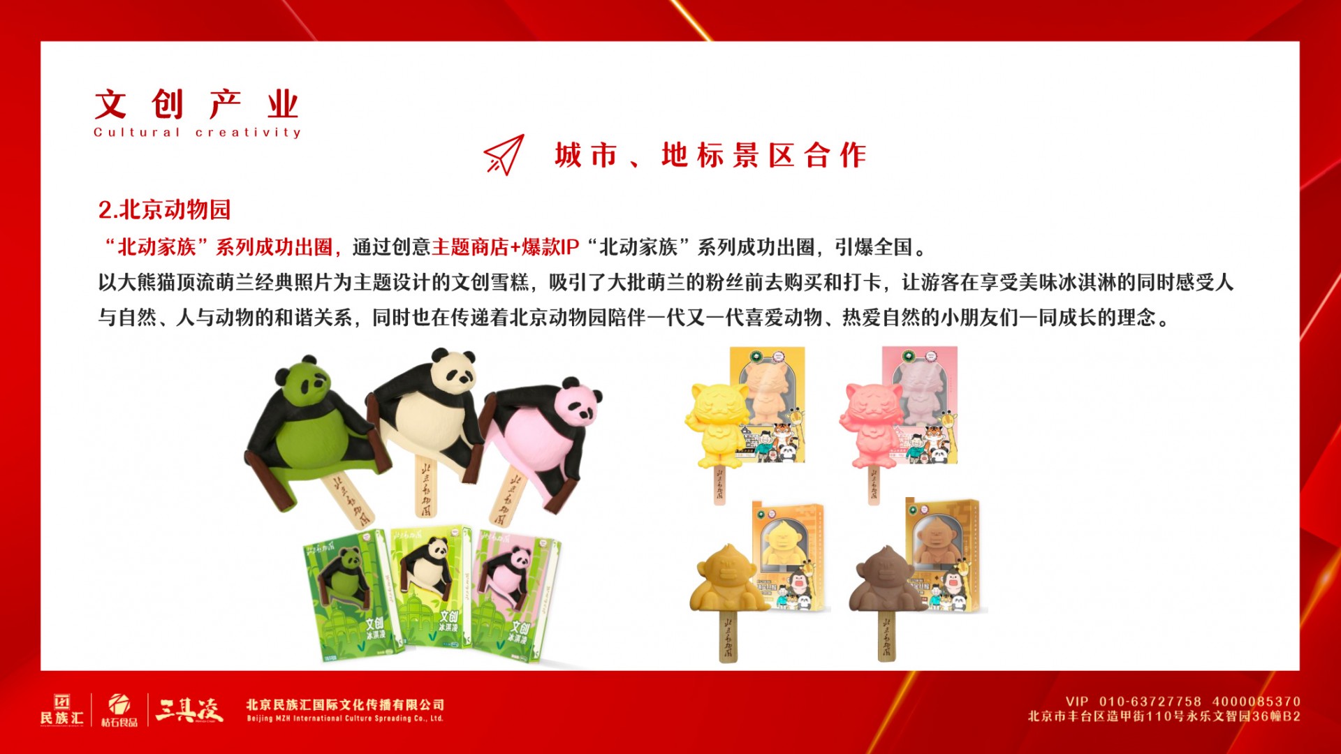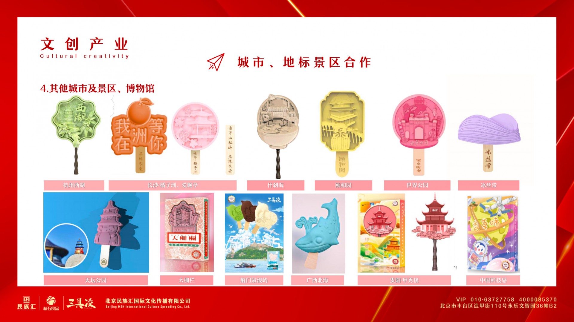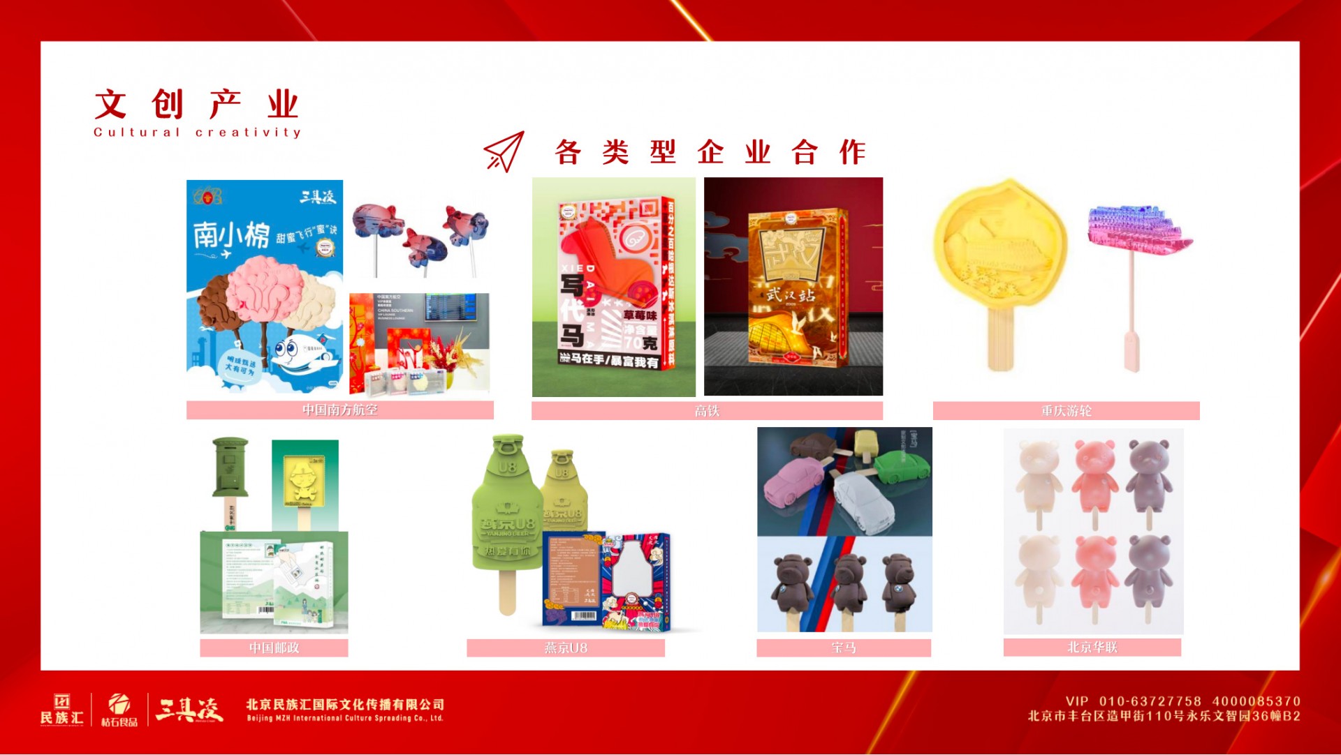 北京民族汇国际文化传播有限公司成立于2010年,十多年专注于文创自有产品辛勤耕耘,致力于探究地方文化和品牌的内涵,以文化为载体,以创意行发展,着力打造以IP为核心的文创产品全产业链服务体系,构建新型文化消费模式。并创建多趣食玩品牌“三其凌”,进军IP生活方式市场,通过直播电商与传统店铺经营结合搭建起“三其凌”品牌商城。